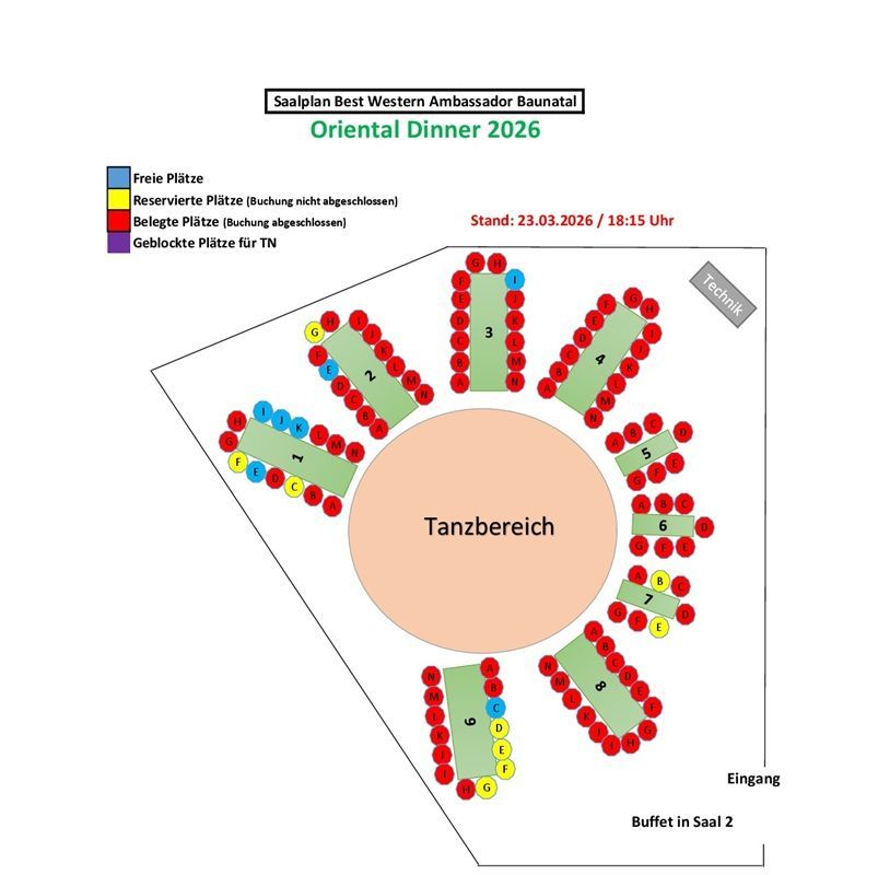 Externe Gäste, die nicht im Hotel wohnen, können Sitplätze kostenpflichtig reservieren. VVK 29,00 EUR je Ticket/Platz.